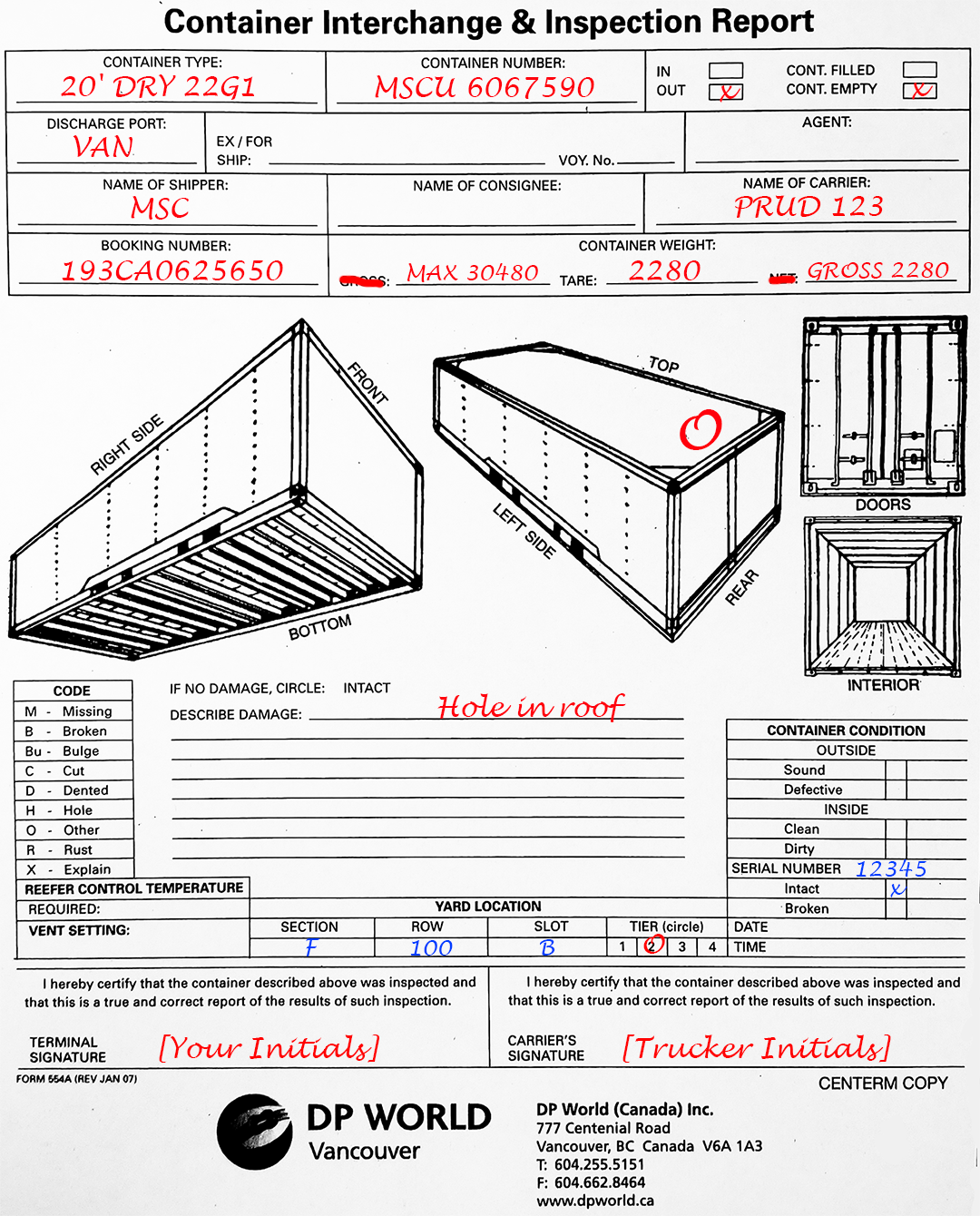- Underline the container number if you have sent a bombcart to pickup that container or given